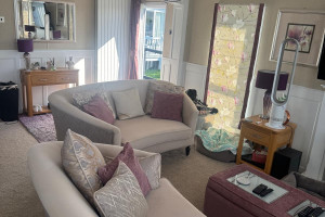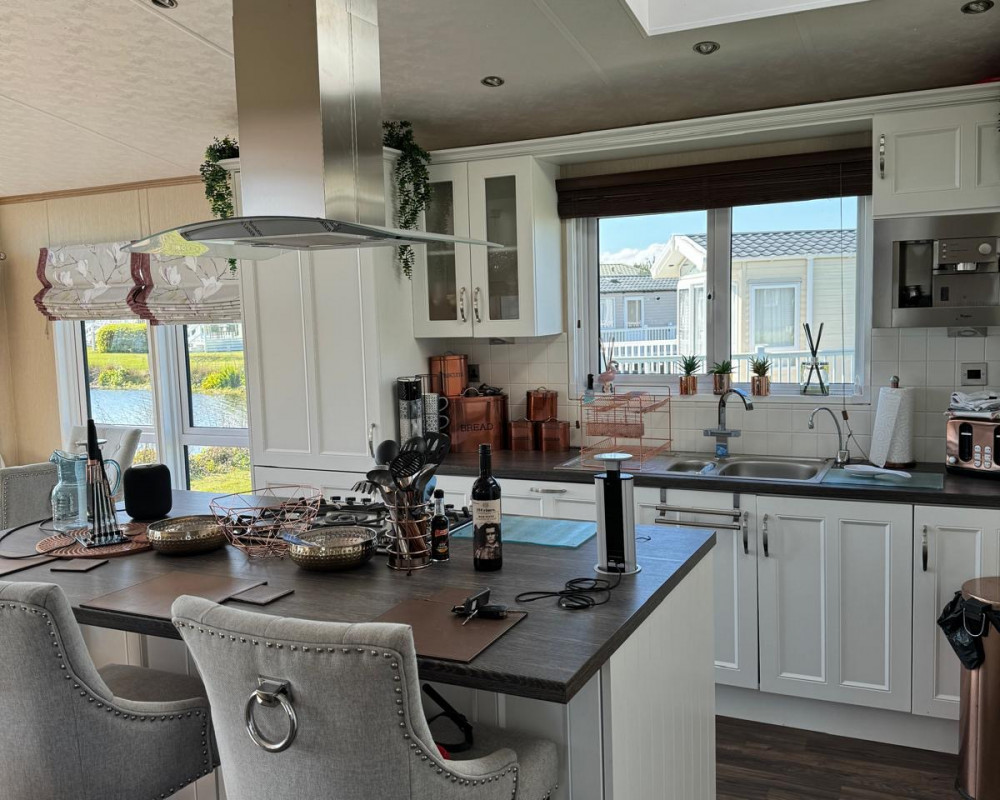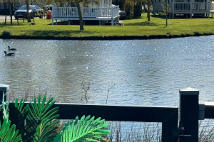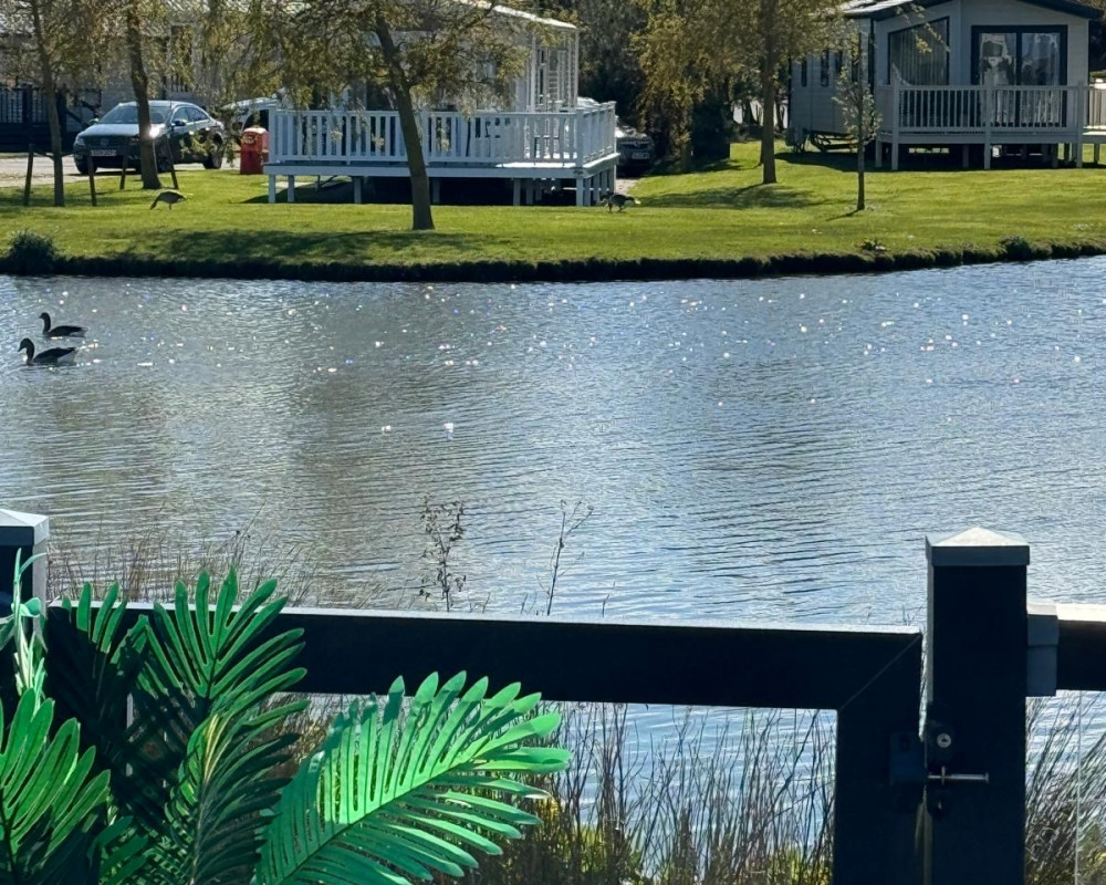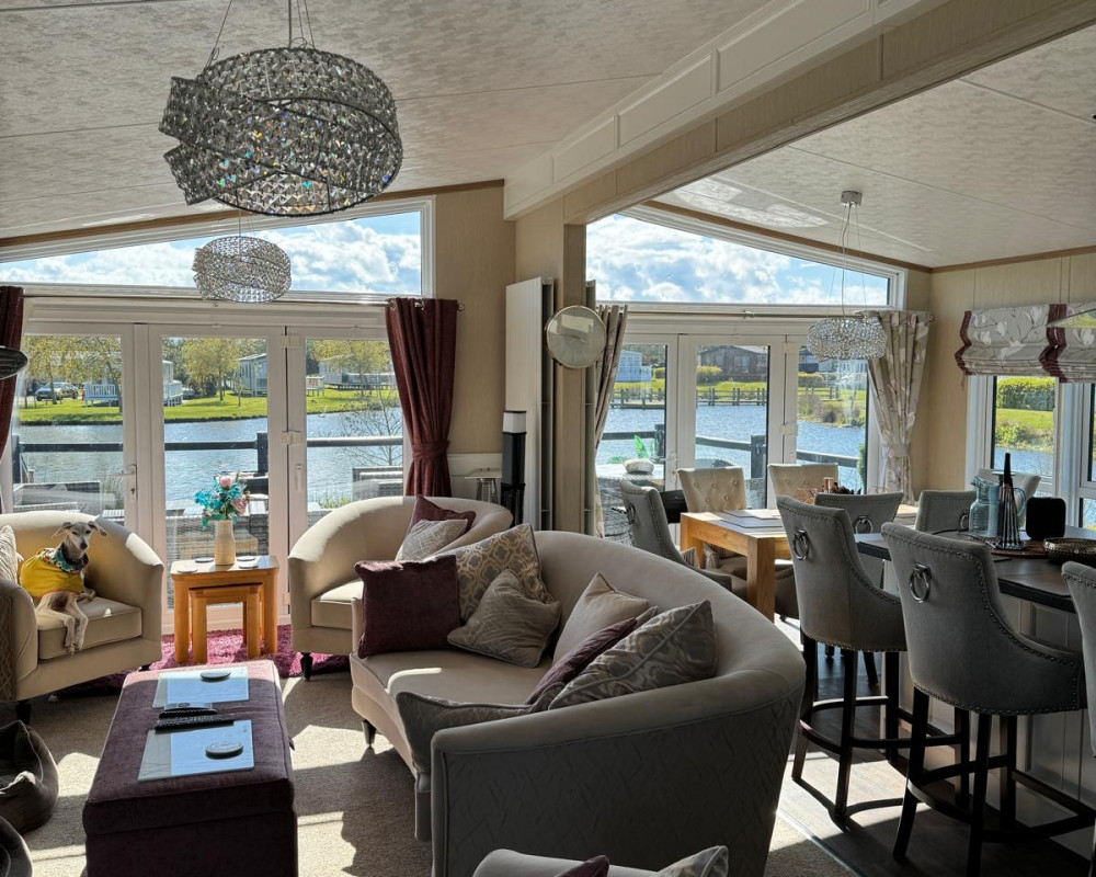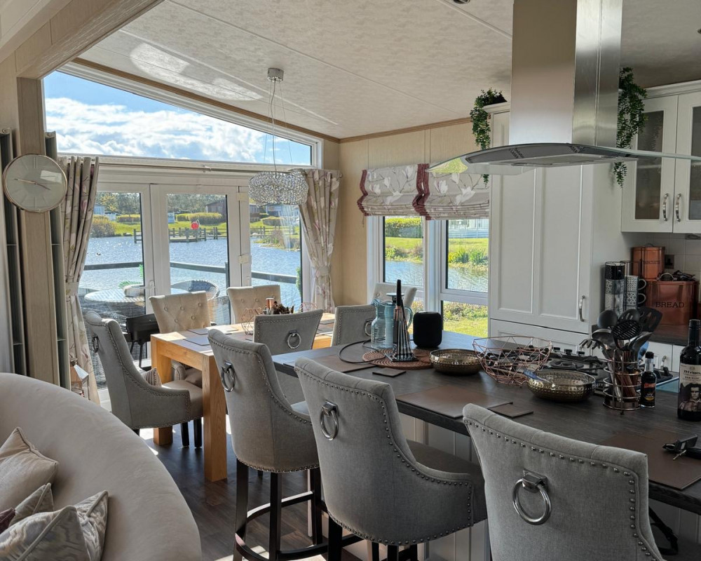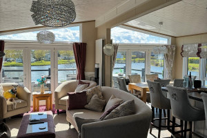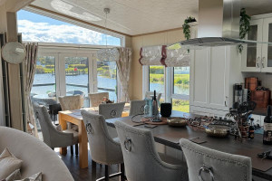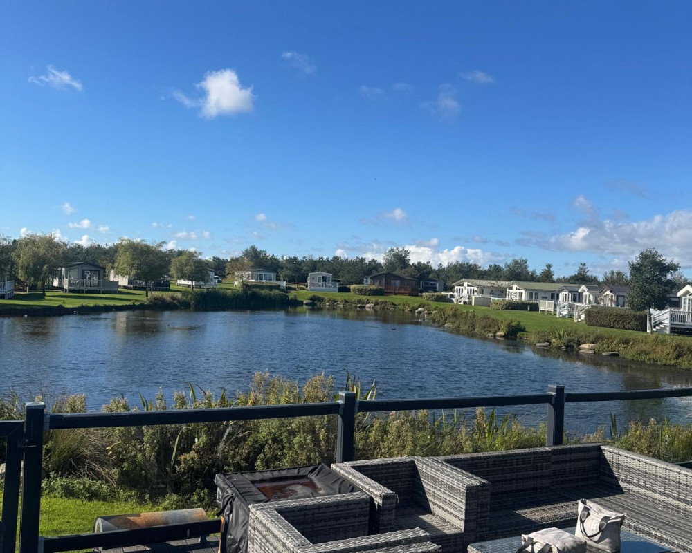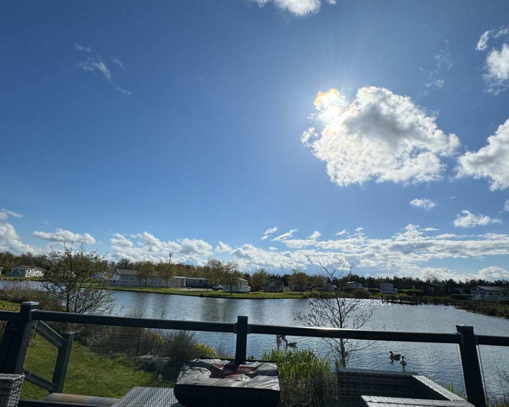 Full wrap around Decking over looking the Lake with Patio Furniture