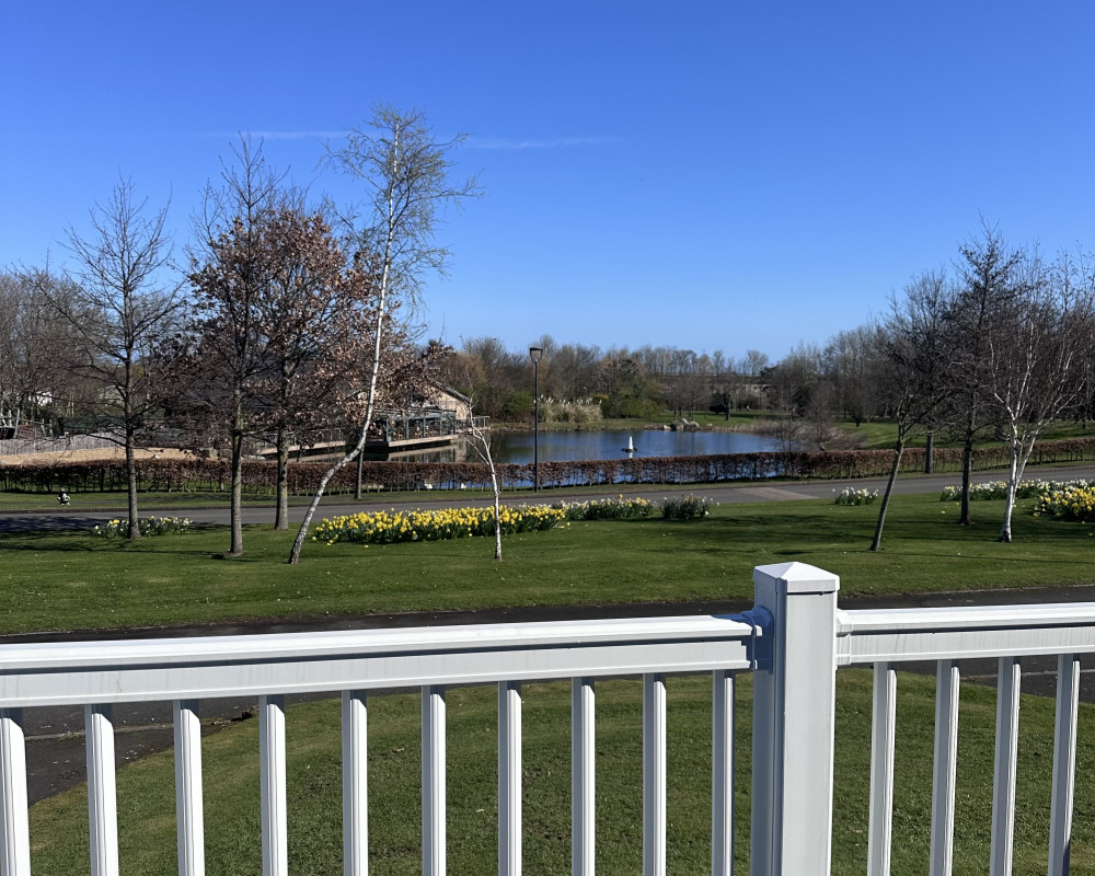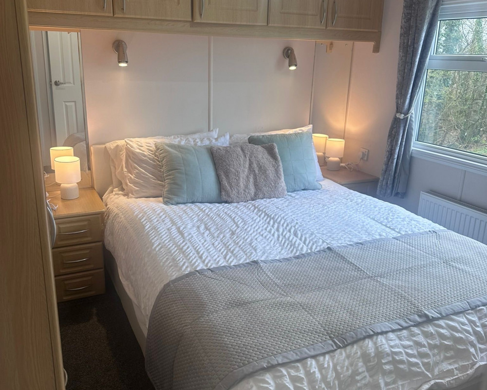 The Lodge is set back from a private road were there are 8 other wooden lodges that sit in this pretty area of the park.Around the lodge is green grass where children can play safely and there are 2 private parking areas.