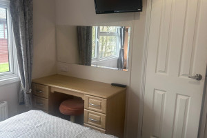 There are 3 bedrooms. One double and 2 twin rooms all with fitted furniture. The master bedroom has a dressing table and a TV The en suite bathroom