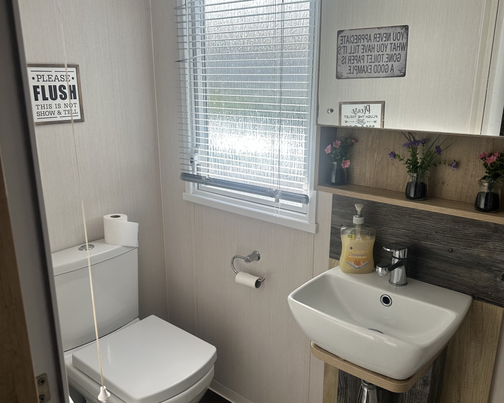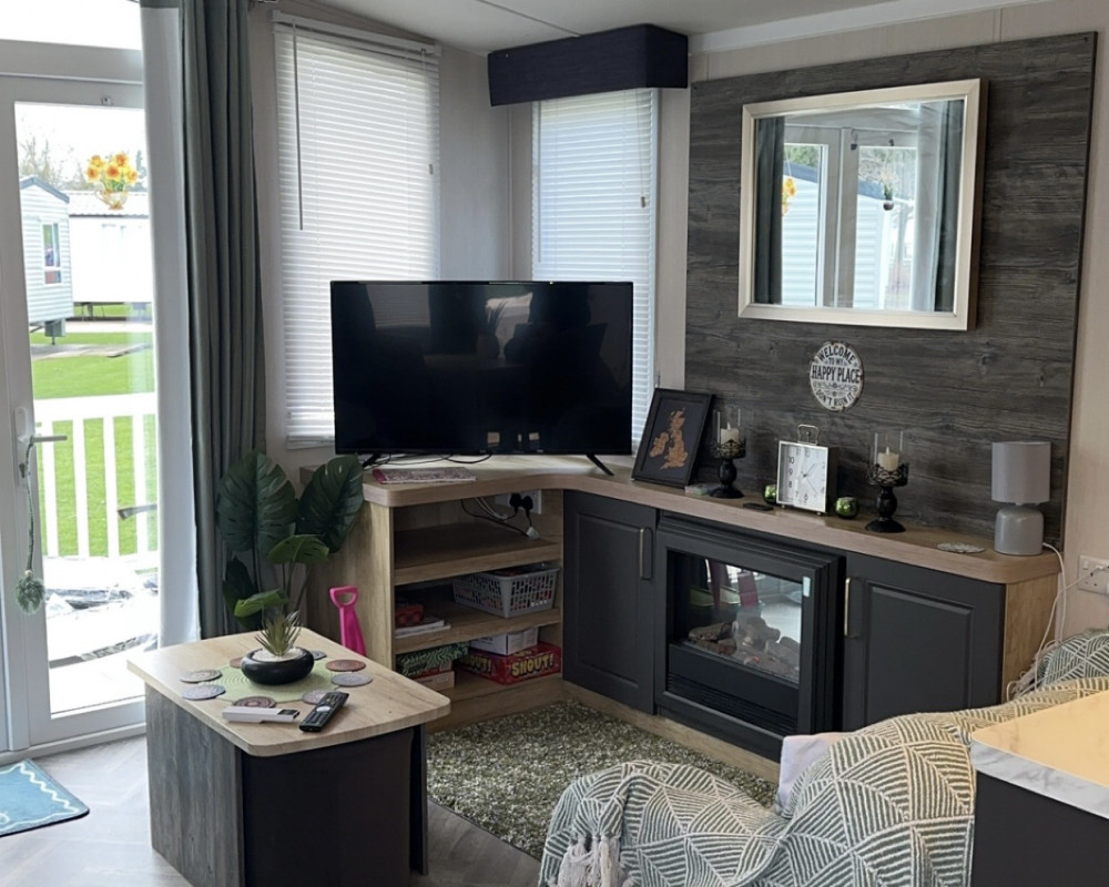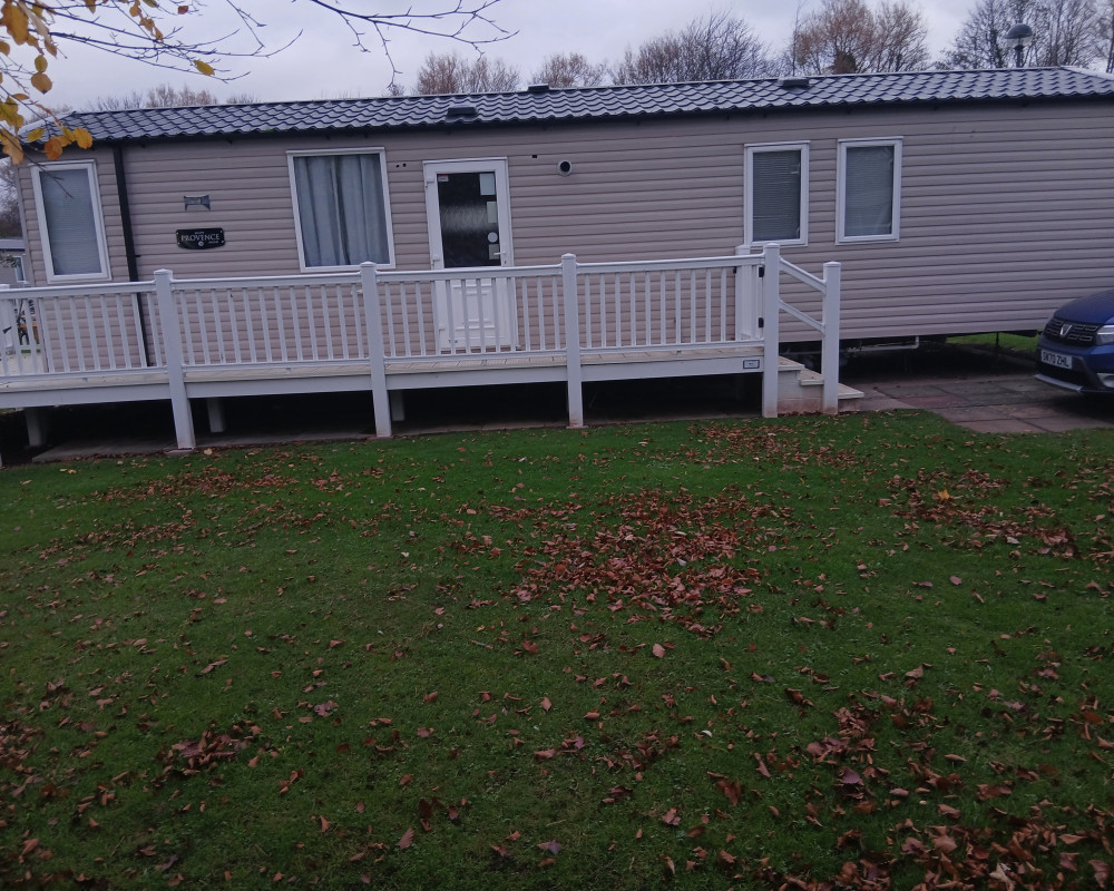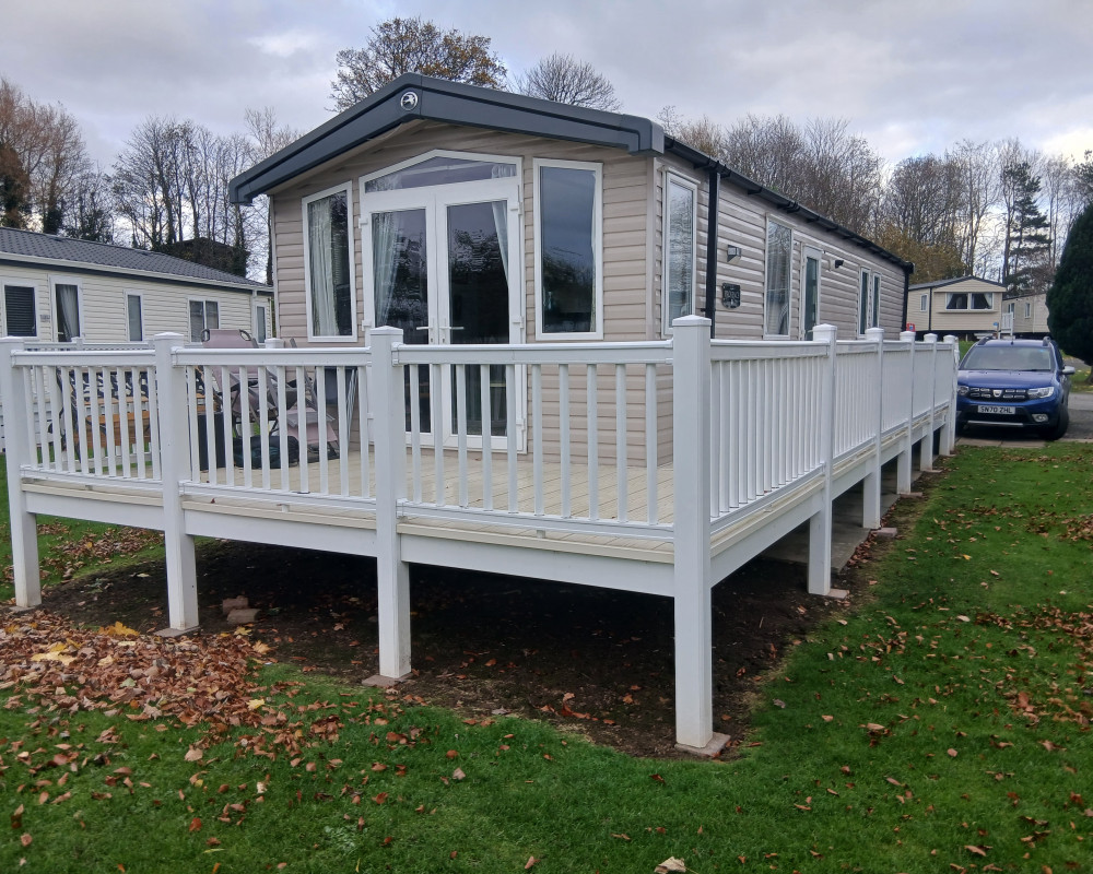 Benefitting from a large wrap around decking and a lovely grassed area surrounding the caravan its perfect for family stays away.