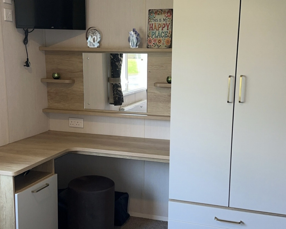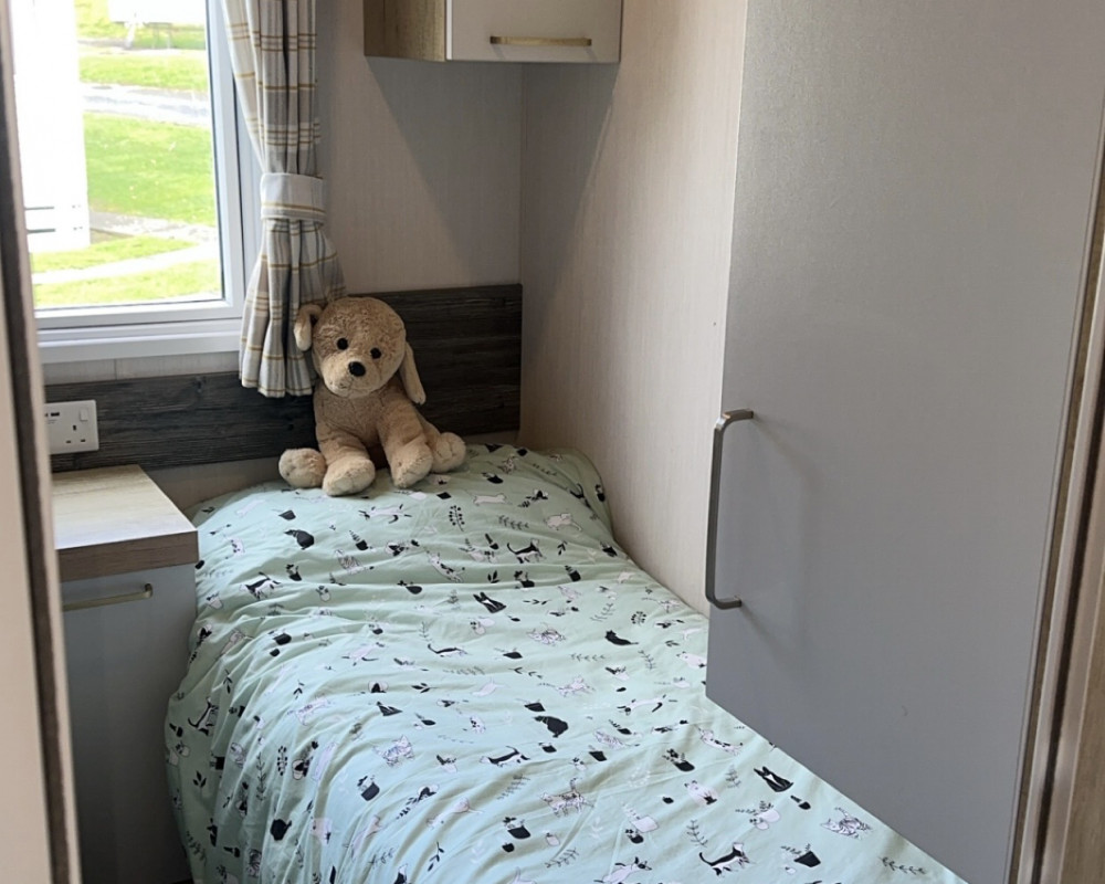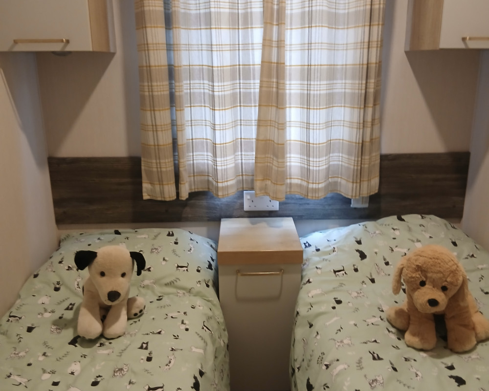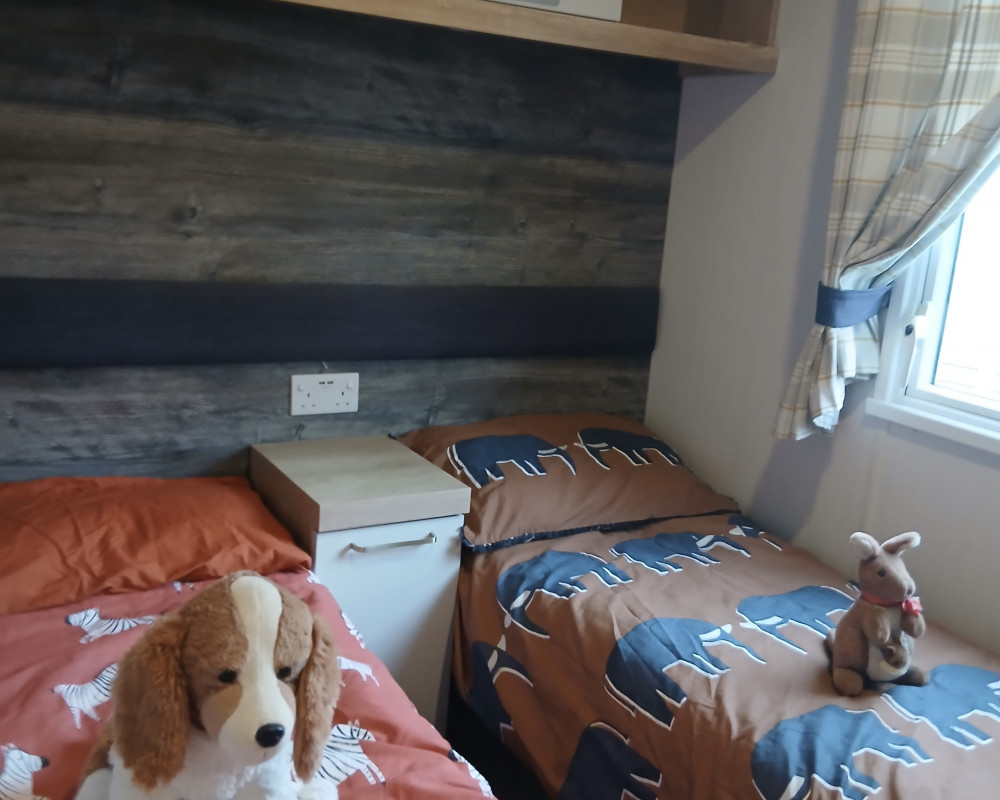 This caravan has 3 bedrooms. Master bedroom featuring an en-suite. 2 x twin rooms and a pull out sofa bed.